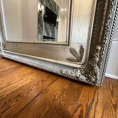 Dimensions: 91” H x 55” W x 3” DPrazzo by Bassett Mirror CompanyFloor MirrorFeatures intricate designsMade from woodIncludes a center beveled mirrorAntique Silver Finish