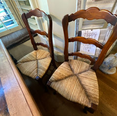 Custom made Briwax finish - Top is made of pine with black antiqued rubbed base - 62 X 62 and 30 T -Up country chairs rush - 41 T, 20” Wide, and 18”deep. It is 19” from the floor to the seat 17” SD.