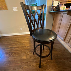 Wood Swivel barstools - 48”T, 17” R, 31” floor to the seat, 16” seat depth.