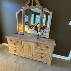 Excellent Condition - Pine wood Headboard - 80” W, 49.5” T - Does not come with Mattress or Frame.Nightstands - 26” W, 16” D, and 23” T.Dresser & Mirror - Mirror itself is 49” T, Dresser is 32” T, 70“ W, 18” D.Armoire - 38” W, 18” D, 60” T