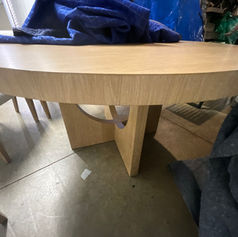 Callon Table is 30” T and 54” RoundPrier Chairs are 23” W, 23”D, and 32” TUsed in a showroom and now stored in a storage unit. Still available new!